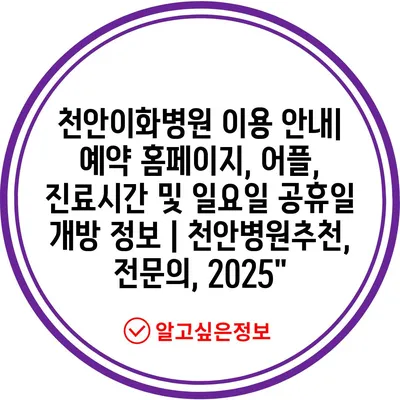 천안이화병원 이용 안내| 예약 홈페이지, 어플, 진료시간 및 일요일 공휴일 개방 정보 | 천안병원추천, 전문의, 2025″