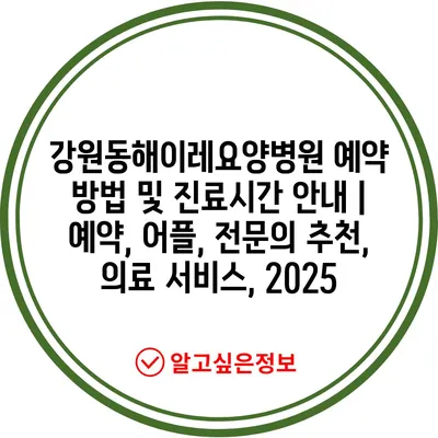 강원동해이레요양병원 예약 방법 및 진료시간 안내 | 예약, 어플, 전문의 추천, 의료 서비스, 2025