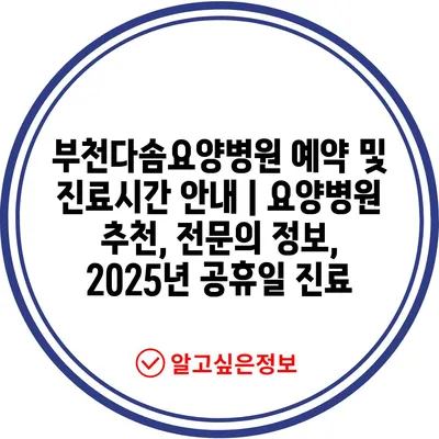 부천다솜요양병원 예약 및 진료시간 안내 | 요양병원 추천, 전문의 정보, 2025년 공휴일 진료