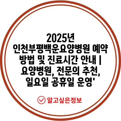 2025년 인천부평백운요양병원 예약 방법 및 진료시간 안내 | 요양병원, 전문의 추천, 일요일 공휴일 운영’