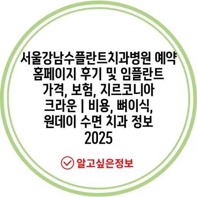 서울강남수플란트치과병원 예약 홈페이지 후기 및 임플란트 가격, 보험, 지르코니아 크라운 | 비용, 뼈이식, 원데이 수면 치과 정보 2025