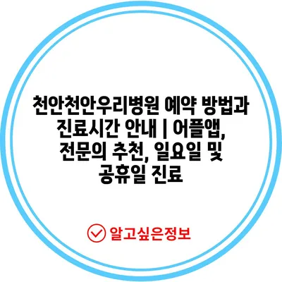 천안천안우리병원 예약 방법과 진료시간 안내 | 어플앱, 전문의 추천, 일요일 및 공휴일 진료
