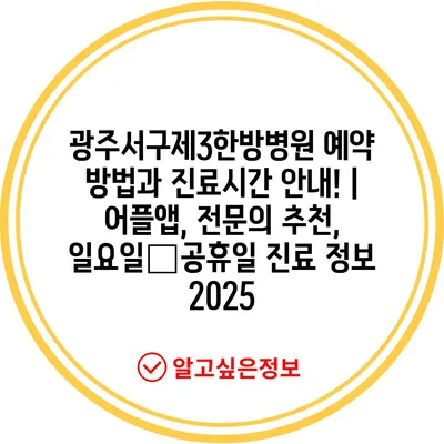 광주서구제3한방병원 예약 방법과 진료시간 안내! | 어플앱, 전문의 추천, 일요일・공휴일 진료 정보 2025
