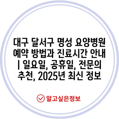 대구 달서구 명성 요양병원 예약 방법과 진료시간 안내 | 일요일, 공휴일, 전문의 추천, 2025년 최신 정보