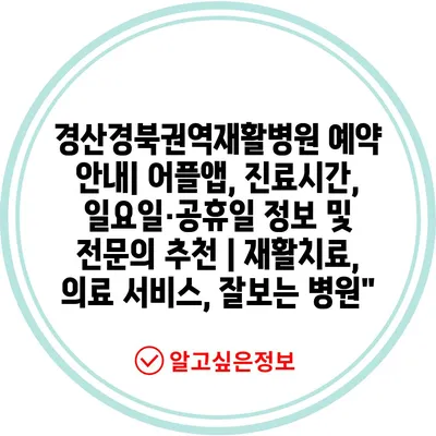 경산경북권역재활병원 예약 안내| 어플앱, 진료시간, 일요일·공휴일 정보 및 전문의 추천 | 재활치료, 의료 서비스, 잘보는 병원”