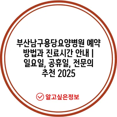부산남구용당요양병원 예약 방법과 진료시간 안내 | 일요일, 공휴일, 전문의 추천 2025