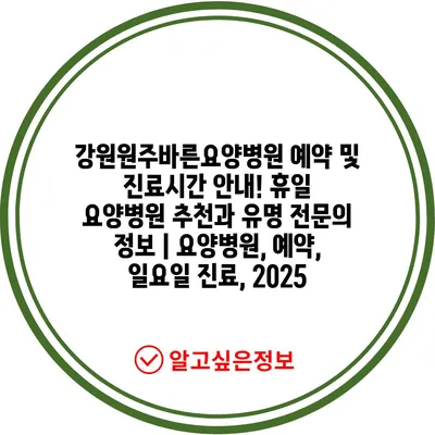 강원원주바른요양병원 예약 및 진료시간 안내! 휴일 요양병원 추천과 유명 전문의 정보 | 요양병원, 예약, 일요일 진료, 2025
