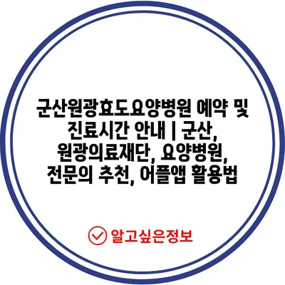 군산원광효도요양병원 예약 및 진료시간 안내 | 군산, 원광의료재단, 요양병원, 전문의 추천, 어플앱 활용법