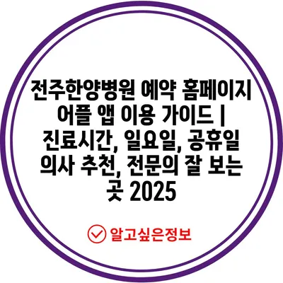 전주한양병원 예약 홈페이지 어플 앱 이용 가이드 | 진료시간, 일요일, 공휴일 의사 추천, 전문의 잘 보는 곳 2025
