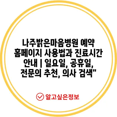 나주밝은마음병원 예약 홈페이지 사용법과 진료시간 안내 | 일요일, 공휴일, 전문의 추천, 의사 검색”