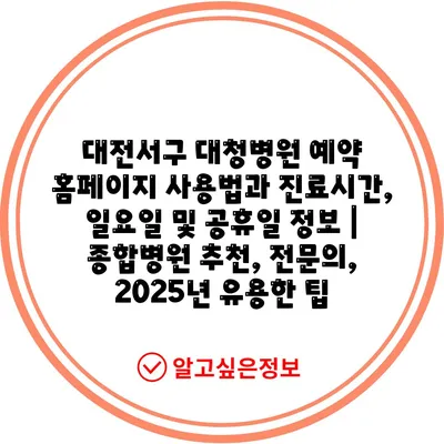 대전서구 대청병원 예약 홈페이지 사용법과 진료시간, 일요일 및 공휴일 정보 | 종합병원 추천, 전문의, 2025년 유용한 팁