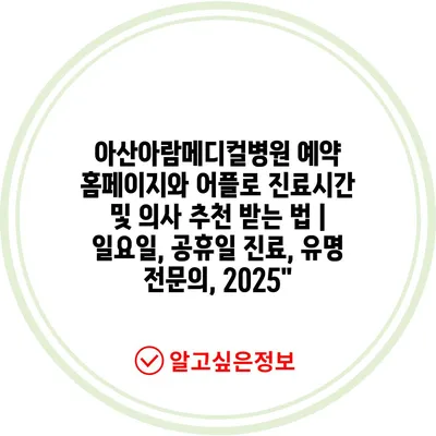 아산아람메디컬병원 예약 홈페이지와 어플로 진료시간 및 의사 추천 받는 법 | 일요일, 공휴일 진료, 유명 전문의, 2025″