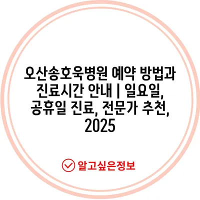 오산송호욱병원 예약 방법과 진료시간 안내 | 일요일, 공휴일 진료, 전문가 추천, 2025