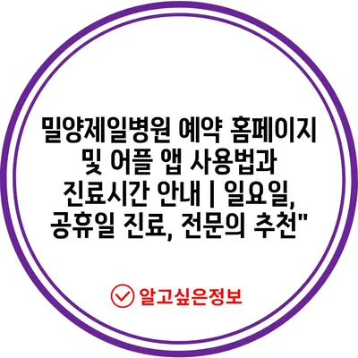 밀양제일병원 예약 홈페이지 및 어플 앱 사용법과 진료시간 안내 | 일요일, 공휴일 진료, 전문의 추천”