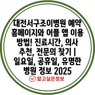대전서구조이병원 예약 홈페이지와 어플 앱 이용 방법! 진료시간, 의사 추천, 전문의 찾기 | 일요일, 공휴일, 유명한 병원 정보 2025