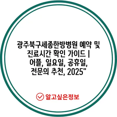 광주북구세종한방병원 예약 및 진료시간 확인 가이드 | 어플, 일요일, 공휴일, 전문의 추천, 2025″