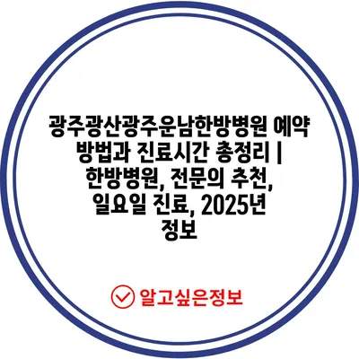 광주광산광주운남한방병원 예약 방법과 진료시간 총정리 | 한방병원, 전문의 추천, 일요일 진료, 2025년 정보