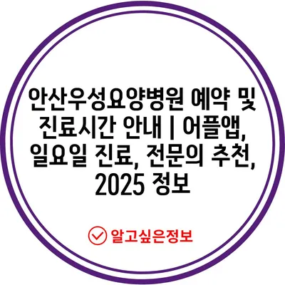안산우성요양병원 예약 및 진료시간 안내 | 어플앱, 일요일 진료, 전문의 추천, 2025 정보