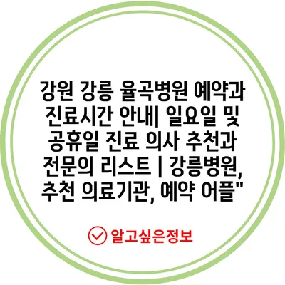 강원 강릉 율곡병원 예약과 진료시간 안내| 일요일 및 공휴일 진료 의사 추천과 전문의 리스트 | 강릉병원, 추천 의료기관, 예약 어플”