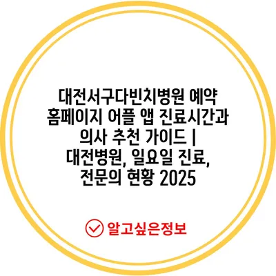 대전서구다빈치병원 예약 홈페이지 어플 앱 진료시간과 의사 추천 가이드 | 대전병원, 일요일 진료, 전문의 현황 2025