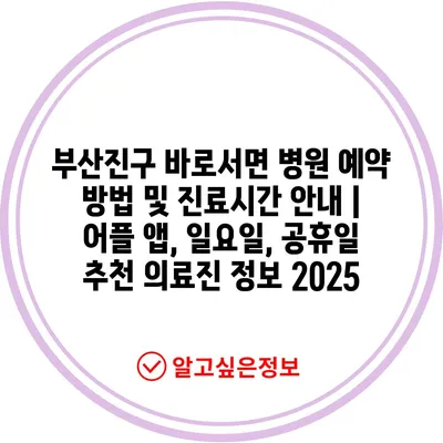 부산진구 바로서면 병원 예약 방법 및 진료시간 안내 | 어플 앱, 일요일, 공휴일 추천 의료진 정보 2025