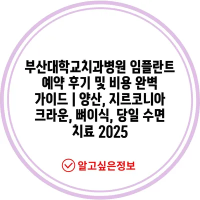 부산대학교치과병원 임플란트 예약 후기 및 비용 완벽 가이드 | 양산, 지르코니아 크라운, 뼈이식, 당일 수면 치료 2025