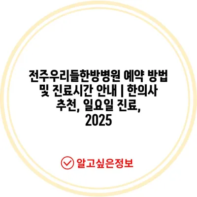 전주우리들한방병원 예약 방법 및 진료시간 안내 | 한의사 추천, 일요일 진료, 2025