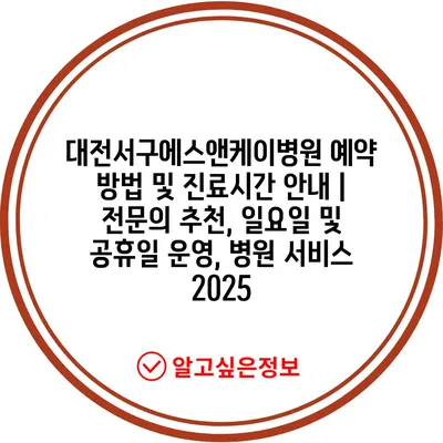 대전서구에스앤케이병원 예약 방법 및 진료시간 안내 | 전문의 추천, 일요일 및 공휴일 운영, 병원 서비스 2025