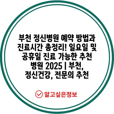 부천 정신병원 예약 방법과 진료시간 총정리! 일요일 및 공휴일 진료 가능한 추천 병원 2025 | 부천, 정신건강, 전문의 추천
