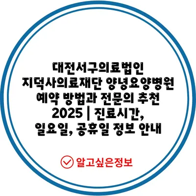 대전서구의료법인 지덕사의료재단 양녕요양병원 예약 방법과 전문의 추천 2025 | 진료시간, 일요일, 공휴일 정보 안내