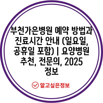 부천가은병원 예약 방법과 진료시간 안내 (일요일, 공휴일 포함) | 요양병원 추천, 전문의, 2025 정보
