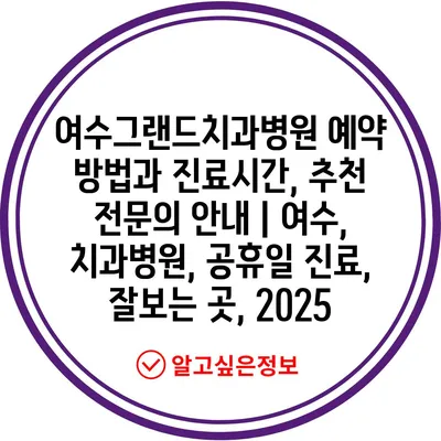 여수그랜드치과병원 예약 방법과 진료시간, 추천 전문의 안내 | 여수, 치과병원, 공휴일 진료, 잘보는 곳, 2025