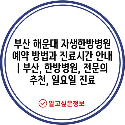 부산 해운대 자생한방병원 예약 방법과 진료시간 안내 | 부산, 한방병원, 전문의 추천, 일요일 진료
