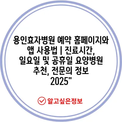 용인효자병원 예약 홈페이지와 앱 사용법 | 진료시간, 일요일 및 공휴일 요양병원 추천, 전문의 정보 2025″