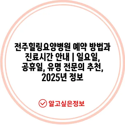 전주힐링요양병원 예약 방법과 진료시간 안내 | 일요일, 공휴일, 유명 전문의 추천, 2025년 정보