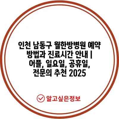 인천 남동구 월한방병원 예약 방법과 진료시간 안내 | 어플, 일요일, 공휴일, 전문의 추천 2025