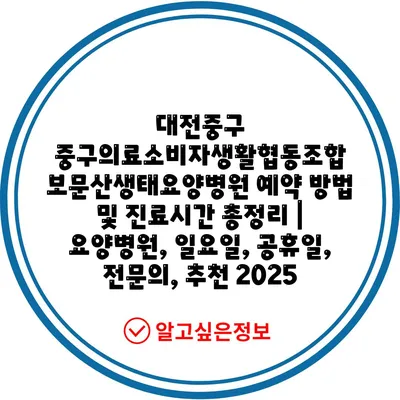 대전중구 중구의료소비자생활협동조합 보문산생태요양병원 예약 방법 및 진료시간 총정리 | 요양병원, 일요일, 공휴일, 전문의, 추천 2025