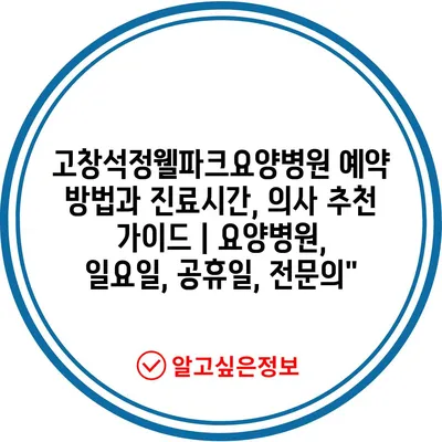 고창석정웰파크요양병원 예약 방법과 진료시간, 의사 추천 가이드 | 요양병원, 일요일, 공휴일, 전문의”