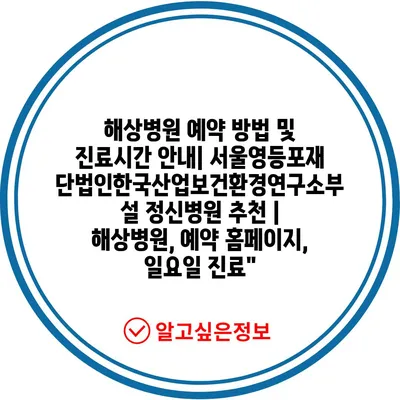 해상병원 예약 방법 및 진료시간 안내| 서울영등포재단법인한국산업보건환경연구소부설 정신병원 추천 | 해상병원, 예약 홈페이지, 일요일 진료”