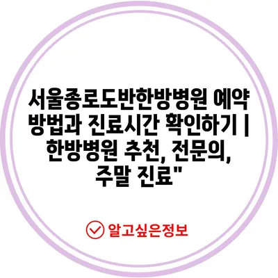 서울종로도반한방병원 예약 방법과 진료시간 확인하기 | 한방병원 추천, 전문의, 주말 진료”