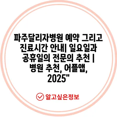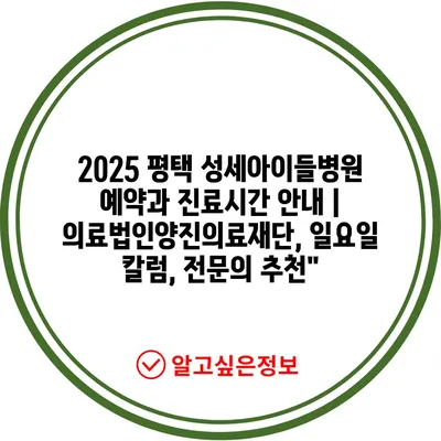 부천서울어린이병원 예약과 진료시간 안내| 일요일 및 공휴일 전문가 추천! | 어린이병원, 예약 방법, 진료 정보 2025